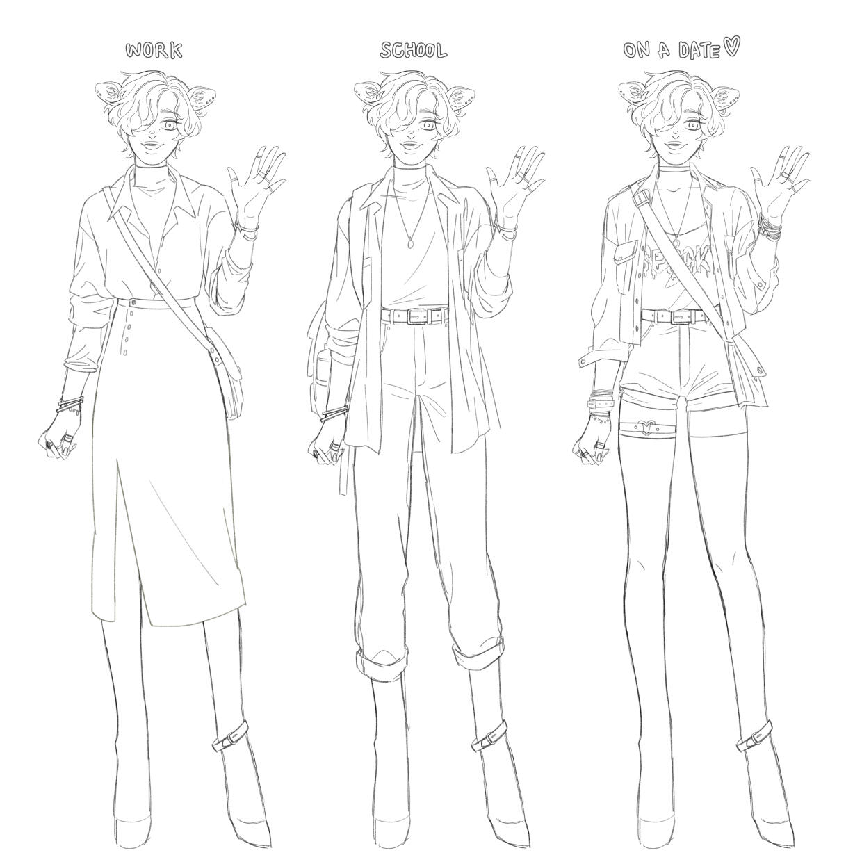 - Personality : Grumpy, but is only happy when they're with Character1- Characters' relationship : They are a lovey-dovey high-school sweetheart couple